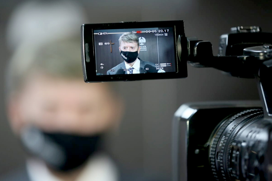 O repórter Breno Leal, do PodCast TJAL, compareceu à coletiva, organizada pela Diretoria de Comunicação (Dicom). Ele também dialogou com o vice-presidente José Carlos Malta, com o corregedor Fábio Bittencourt e com Tutmés Airan, que deixou a Presidência nesta sexta-feira (15).